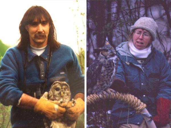 OFES Director Craig Newman (above left, with Barred Owl, 1984), has had a lifelong passion for rehabilitating birds. Craig dedicates every day to caring for both the patients and education birds of OFES. His work doesn’t stop on the Farm; OFES impacts thousands of Vermonters each year through presentations at schools, festivals, farmers’ markets, and special event programs. Eveleen Cecchini (above right), co-founded OFES along with Craig in 1989. As Director and an educator for many years, Eveleen catalyzed the creation of both OFES and the partnership with the Farm. The above photo was featured in our 1997 Fall Program Calendar, the year the partnership between the two organizations began.