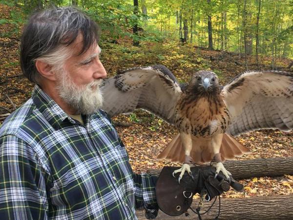 This Red-Tailed Hawk, known as Abbey, was hit by a car in 2002, rehabilitated at OFES, and has been an OFES wild ambassador ever since. Wild ambassadors are birds whose injuries, even after rehabilitation, prevent them from being returned to the wild. Instead, through permits from US and VT Fish and Wildlife, they can be used in educational programming.