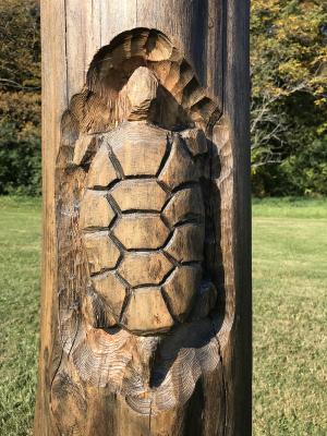 The Turtle symbolizes Mother Earth, Turtle Island, and the Abenaki Turtle Clan, which includes those Abenaki Tribes living predominately along the Lake Champlain Basin. The Abenaki name for the Turtle is Tolba.