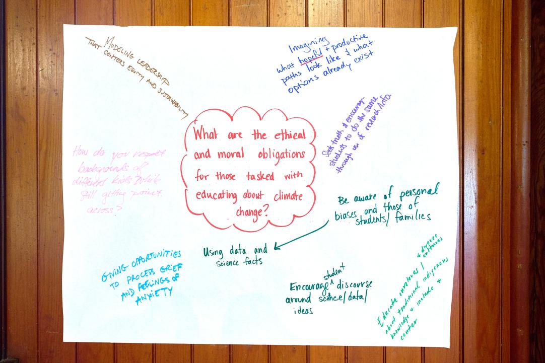 This program kicks off in August with an in-person summer gathering; reconvenes in the fall for a regional in-person gathering; and culminates with a spring in-person celebration in April. Teacher participants reflect and grow their practice with climate change education throughout the school year. Two virtual check-ins in the winter keep the cohort engaged with each other and offer continued support as teachers apply learning to practice and implement projects with students.