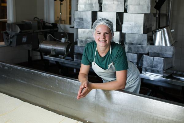 I was hired as an Operations Assistant. This position allowed me to learn about cutting blocks into smaller pieces, inventory, shipping, and other day-to-day activities involved in processing cheese and moving it out the door. Within my first year, I was asked to move into the position of Processing Coordinator. This meant I was deciding what needed to be cut and selecting batches of cheese to fill those inventory needs. I was also training to make cheese at this time, so when the position of Head Cheesemaker opened up, I took the opportunity to apply. The Head Cheesemaker role shifted my focus to the milk-to-cheese side of the operation. It also opened me up to the world of food safety and the requirements needed to produce a safe food.
