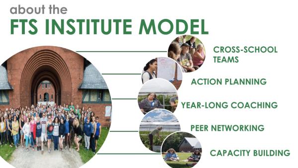 The Farm to School Institute uses a three C’s model of change, connecting the classroom, cafeteria, and community. They aim to connect these three essential areas through integrating food education, improving nutrition and food access, and building relationships between students, families, and schools. A key component of the program is action planning, during which schools meet at a summer intensive with their collaborative teams to develop an action plan ready to implement at the start of the new school year. The teams are paired with a coach - an experienced practitioner at the Institute that supports them throughout the year as they plan and implement their action plan. By bringing schools into a shared space for learning, the Institute facilitates peer learning and a sense of shared purpose among participants, with dedicated time to explore the innovations and feedback of the teams’ peers. The Institute builds cross collaborative school teams as well, with teams made of administrators, teachers, school nutrition staff, and other key players needed to create a robust and sustainable program. These teams also receive professional development and role-specific communities to help build capacity.