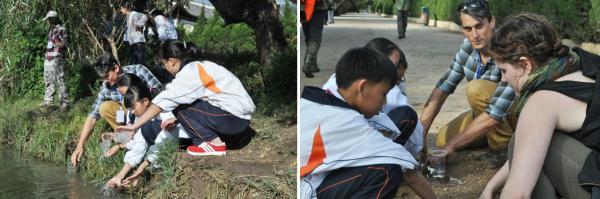 While the cultural and political context we were operating in couldn't be more different from Vermont, we were still able to share Education for Sustainability practices that the students found engaging and teachers found intriguing. I was tasked with leading an outdoor, hands-on “demonstration lesson” in a place I’d never been in a language I did not speak. So I met the MIC Kunming students and gave them a 30-minute crash course in our approach to education. Only a few were environmental studies students, and some had backgrounds working with children. But their Chinese language skills were impressive, and would be the key in making the hands-on wetland exploration stations work.