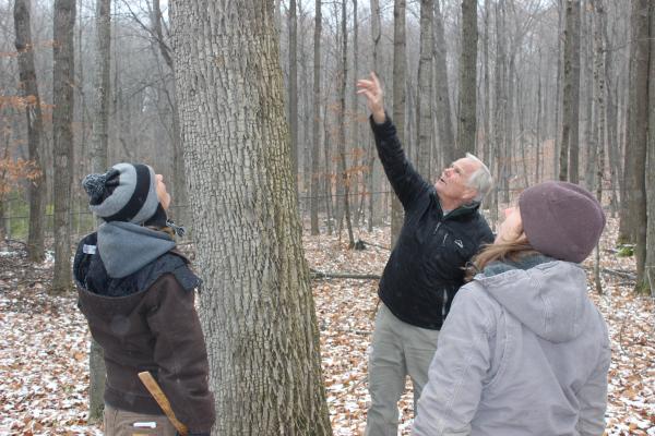 They move on and David stares up the trunk of a tall, large oak, “This is a couple thousand dollar tree,” he estimates. “Why not take a couple down like this and make some revenue from selling veneer oak?” Dana is concerned that their sprawling canopies would damage surrounding maples on the way down. It’s a discussion that will wait for Richard Lavigne, who’ll be working with the Shelburne Farms woodlands team to harvest the trees in a few weeks. (Richard and his father have been harvesting trees at Shelburne Farms since the 1970s!)
