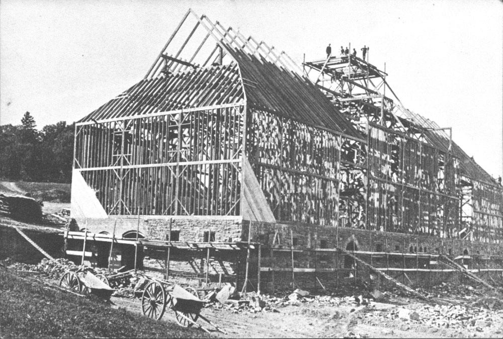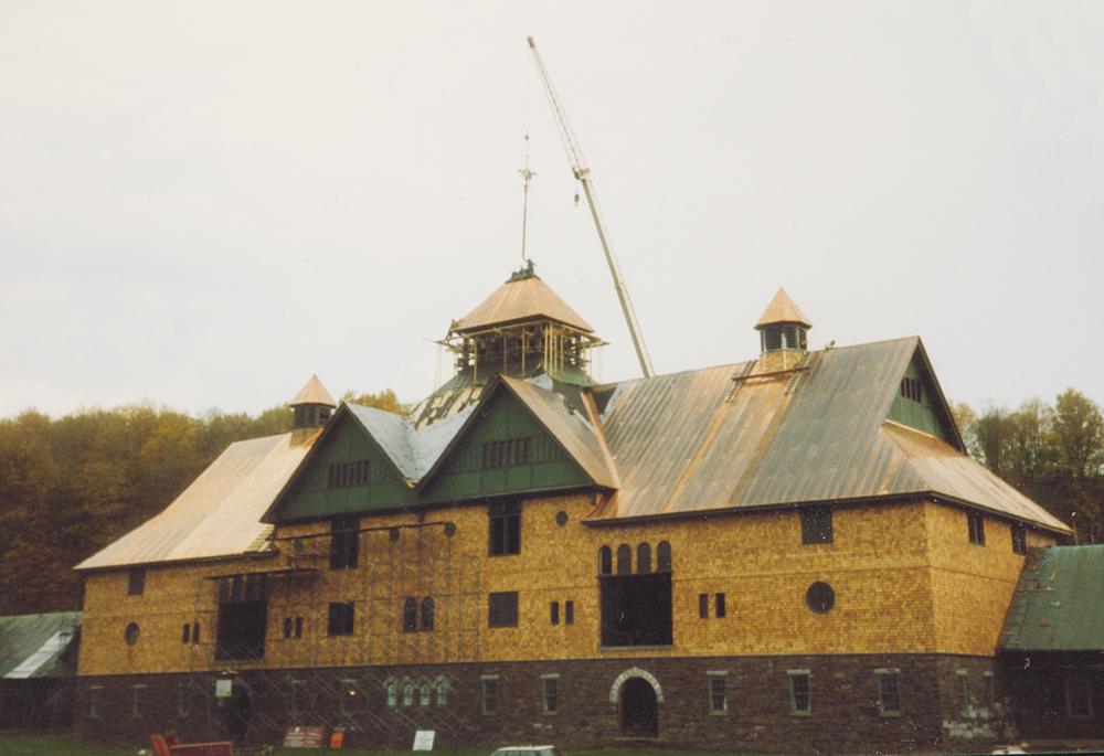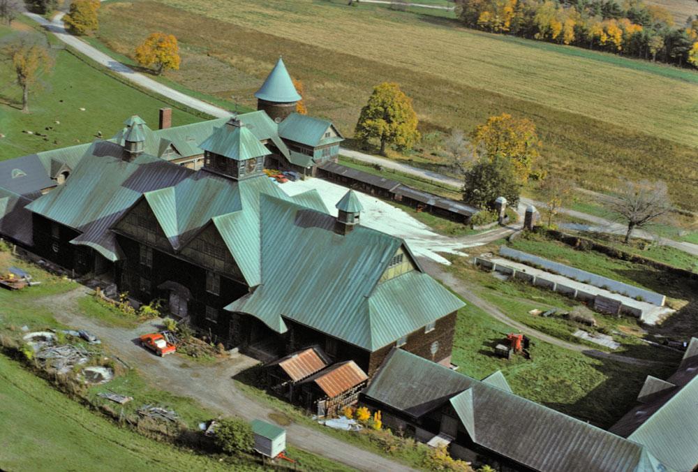 The Farm Barn is the hub of Shelburne Farms' education programs and nonprofit administration. It's main section is five stories high; its courtyard is nearly 2 acres. It was designed by architect Robert H. Robertson, and constructed between 1886 and 1890 to house offices, workshops, farm machinery, stables, and crop storage rooms. In 1972, the new nonprofit began using the building. Then from 1990-1993, the barn underwent a $3-million renovation to become an education center.
