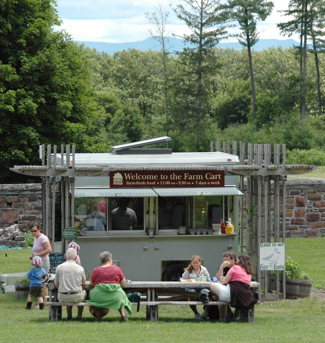 During your day visit, mid-May to mid-October, you can purchase and enjoy farm-grown lunch and snacks at our Farm Cart, located in the courtyard of the Farm Barn. Simple menus feature produce and products grown at the Shelburne Farms and at other nearby farms.