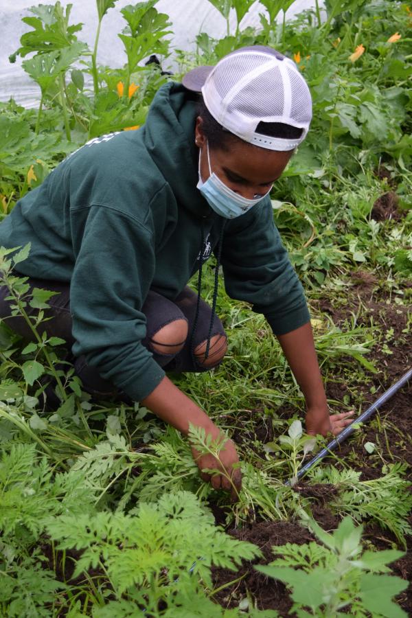 Through The Food Project’s introductory summer Seed Crew, youth spend mornings farming in the fields and afternoons in workshops, where they are introduced to the concepts of food justice, identity exploration, and systems of oppression. Graduates of Seed Crew can choose to advance to the academic season Dirt Crew. Working during the school year, Dirt Crew members build garden beds for local residents and lead groups of volunteers on The Food Project’s urban and suburban farms. Sharing their expertise with nascent urban gardeners, Dirt Crew members strengthen an expanding network of fresh food growers, increase healthy food access in low-income neighborhoods, and foster a culture of fresh food consumption for all. Year-round Root Crew members, their most experienced cohort of youth, are at the cutting edge of food system innovation in under-resourced communities—managing affordable, SNAP-accessible farmers’ markets, and collaborating with residents to help imagine and create local infrastructure for affordable fresh food distribution. Their work places an emphasis on increasing neighborhood food production and building Win/Win distribution solutions that equally benefit fresh food consumers and local farmers.