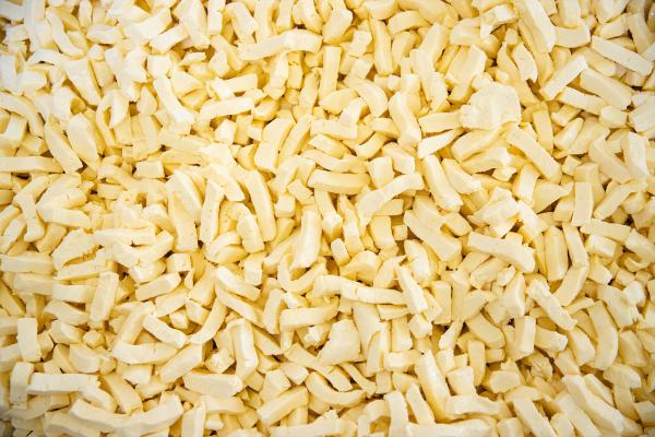 We use raw milk to make our cheddar because the cultures growing in our milk produce complex, delicious flavors that directly reflect the pastures that our herd graze on. To ensure that only healthy cultures survive in the cheese, all raw milk cheeses sold in the US must be aged for a minimum of 60 days. Unfortunately, fresh, loose curds would definitely lose their “squeak” during that time — and they don’t age well either!