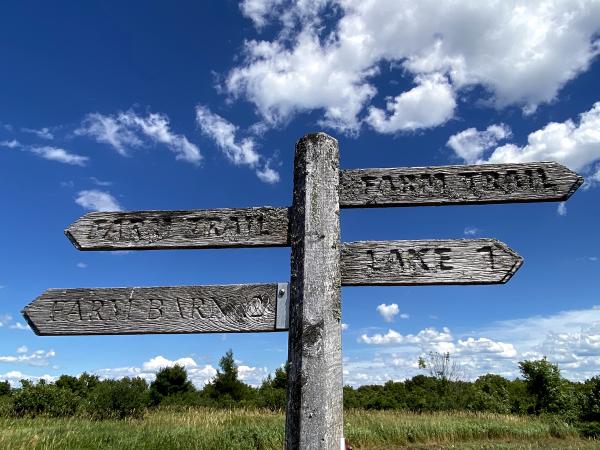 The public walking trail system began thirty-five years ago, in September 1984, with a single path leading from the Farm Barn up to the top of Lone Tree Hill. Public access to the property grew with the establishment of the Farm Store & Welcome Center in 1986. Between 1986 and 1992, five additional miles of trail were established using secondary roads and mown paths through fields. Today, the trail system includes over 10 miles of paths and trails.