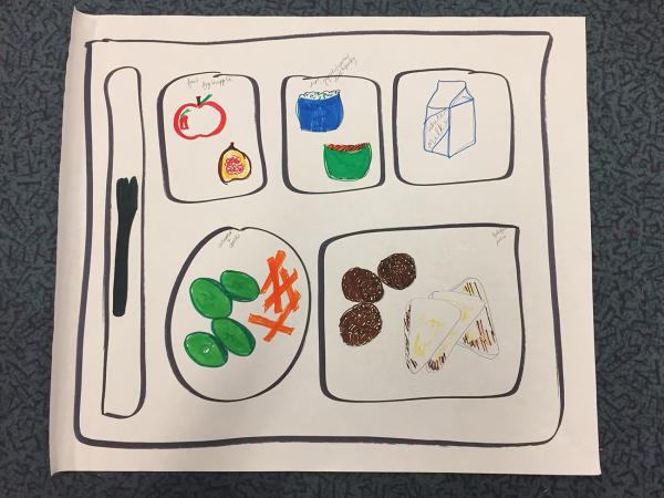 The group selected a jazzy meal to make together, one that could actually be served in their school cafeteria: A vegetarian falafel and pita dish with dips and vegetables, along with some exotic and culturally appropriate fruits: figs and pomegranate that could be introduced in a taste test in classes beforehand.