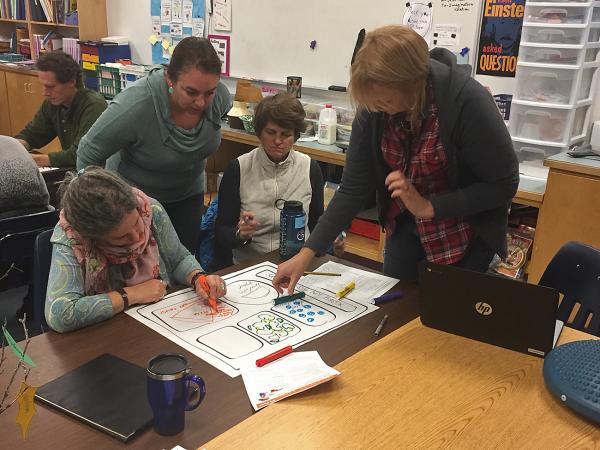 Teachers were exploring how to integrate food, farming, and nutrition lessons into their curriculum, so preparing their own snacks and meals to meet USDA nutritional guidelines was a natural each Wednesday afternoon when they met at Shelburne Community School.