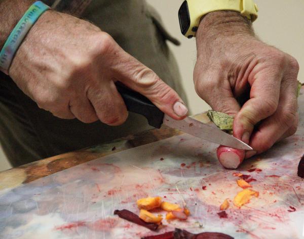 On farms, we learn through doing. So it only made sense to carry this pedagogy forward to our conference. At various workshops, attendees prepped and tasted food, helped harvest crops from the Pearlstone Farm, and made upcycled plant pots. One evening, attendees brought a variety of DIY projects to a Farm Craft Share Faire, where folks could make felted flowers, naturally dyed bookmarks, teabags, evergreen corsages, and more. Whether felting, chopping, or joining together with song, we used our hands for learning throughout the conference.