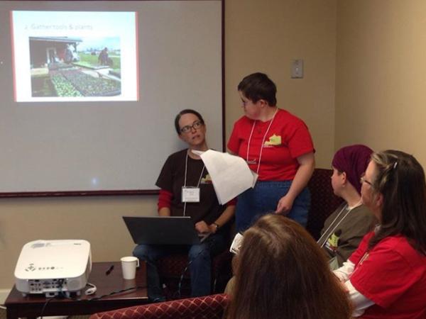 Social care farming brings together farmers, social service providers, and community members who use farming and farm-related activities to promote therapeutic intervention, employment, meaningful activity, and/or community connection for marginalized and vulnerable populations. After organizing a successful Social Care Farming summit in 2018, Red Wiggler Community Farm (above, presenting a workshop), was excited to invite their community to our conference for further networking and learning. Social Care Farming became one of eight workshop themes, which also included Farm to School (and Camp!); Seeding Community; and Creating and Sustaining Your Organization.