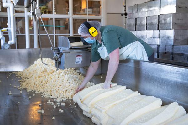 Our cheesemakers crafted all that fresh milk -- more than 1.4 million pounds -- into Shelburne Farms award-winning cheddar, for a total yield of just over 160,000 lbs of raw milk cheddar in 2021. (Photo: Sarah Webb)