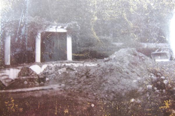 Oval reflecting pool getting filled in, October 1953. Derick Webb photographs albumBy the mid 1940s this area was overgrown and by the early 1950s the pool was filled in, as evidenced in this 1953 photo. The failing pergola was removed following a hurricane in 1953. The oval eventually became a new garden space.