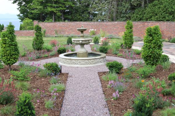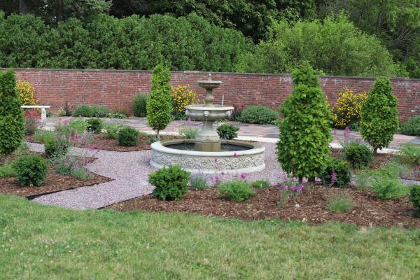 Over the past several months horticulturist Paul Wieczereck redesigned this outdoor space at the northern end of the garden to reinstate some of the features lost over time. A contemporary ornamented, two-tier fountain was installed on the site of the reflecting pool to reintroduce a water element. The surrounding garden design is a nod to Lila’s early interest in parterre gardens. As for the plant material, Paul explains "The main 'bones' of the garden are the four compact European Hornbeam, Carpinus betulus 'Columnaris Nana' and several evergreen Korean Boxwood, Buxus sinensi var. insularis. The Hornbeams repeat the vertical accents of the tall, narrow Arborvitae in the existing garden and provide continuity; the clipped shapes of the boxwood add a necessary element of formality, particularly as they mature. A variety of perennials and some annuals complete the rest of the planting. Once established, the plants will hopefully require a minimum amount of supplemental irrigation, reflecting our commitment to low input, sustainable agriculture."