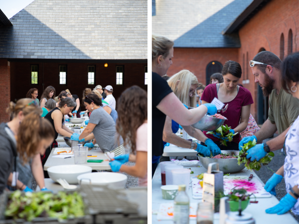 In between the workshops, team planning sessions, learning journeys throughout the Farm, and presentations from local and regional partners (including Hunger Free Vermont; representatives from the Leahy, Sanders, and Welch campaigns; and the USDA), participants rolled up their sleeves and took on our first-ever Salad Competition! Their mission: to create a delicious salad inspired from a bountiful spread created by Chefs Jim McCarthy and John Patterson. Farm to School connects cafeterias to local food sources, which often allows school nutrition staff to be more creative in the kitchen; purchasing and utilizing local and in season foods requires more time and effort than planning menus based on prepared foods from cans or the freezer. By creating these salads on-the-spot, this activity test-drove this concept in a fun, hands-on way to prepare for the coming year. Lots of great salads were made, here’s one that rose to the top of the menu:North Meets Southwest Chopped Salad