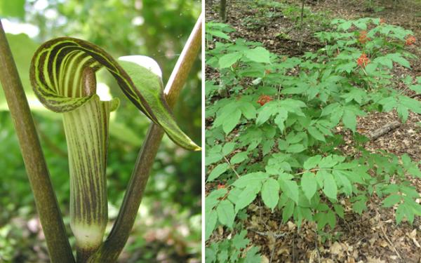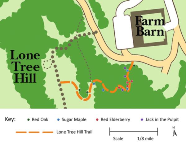 Last summer, we worked with a graduate student in UVM’s Field Naturalist program, Chelsea Clarke, to develop a phenology trail. Along our Lone Tree Hill trail, Chelsea flagged fourteen plants of four different species that can be monitored over time: Red Oak, Sugar Maple, Red Elderberry, and Jack in the Pulpit.