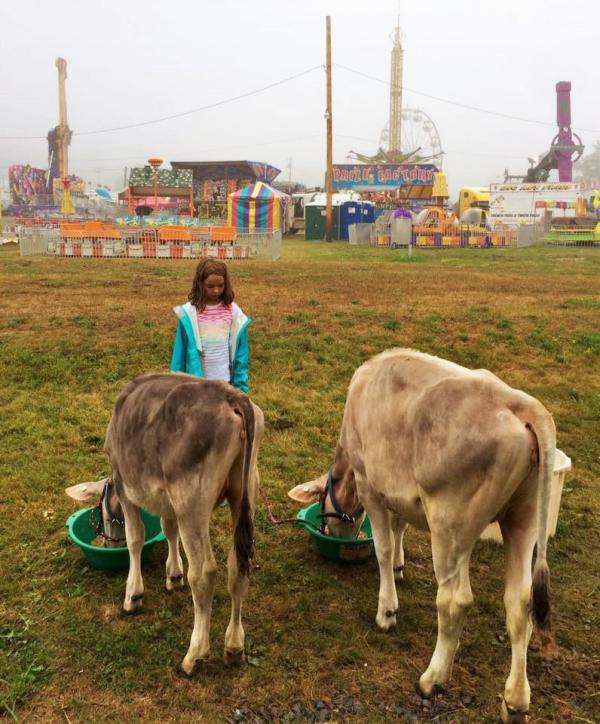 Madeline picked out her very first calf this year and was beyond excited to just be with “White”. She would have been out to the barn every day if she could have been. She loved White so much. Madeline worked hard to earn White’s trust and friendship by brushing and talking to the calf to get her used to being handled. She taught White to walk on a halter and the two of them practiced often to prepare for the fair shows.Working your calf is about a long-term commitment to something, with all the ups and downs. Sure, it’s fun to cuddle with your calf and lead her when she wants to cooperate, but trying to pull 300 pounds of pure stubborn can be really frustrating. Dealing with frustrations like that is an important part of the experience of working with an animal, and it’s what makes it rewarding and meaningful, for Madeline and all the kids.