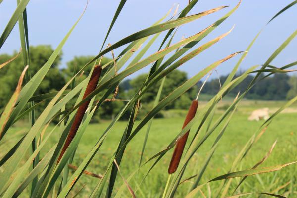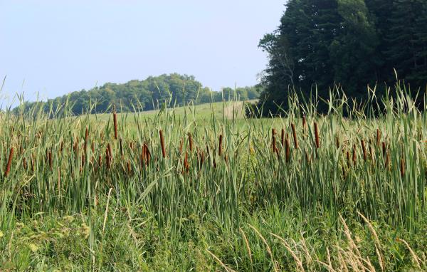 Part of our constructed wetland, looking back towards pastures and cow lane. - We moved our pack manure composting site farther from the lake and drainage areas. (2010)