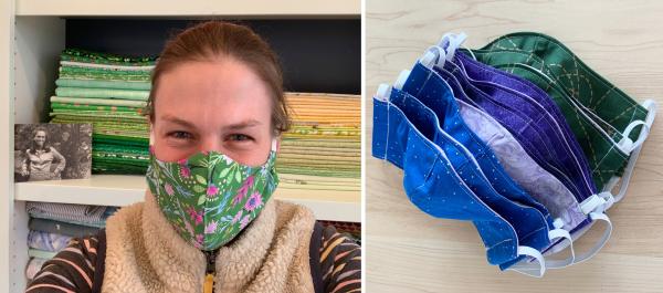 “Over the past two weeks the sewing community has been coming together to sew masks with the famous poster "keep calm and sew a mask" in mind. We've all heard about the shortages of PPE in our hospitals and although these masks aren't as effective as the N-95s, the state of Vermont now recommends that people wear masks out in public. I've been contacted by numerous friends to make masks for them, their parents, etc., and my sewing machine is whirring from dawn till dusk :) Thankfully, I have a very robust fabric stash as well as quite a bit of elastic left over from old projects! It's fun to be able to customize the masks based on the friend's taste (rainbows! blue! unicorns!) -- I hope they'll bring a little joy during this uncertain time. In addition, Lyric Theater Company is coordinating an effort sewing masks for UVM Medical Center with special heavier weight fabric, so we're sewing on all fronts! It brings to mind war efforts of yesteryear and I feel a connection to those that have gone before me -- we all want to do our part to help in whatever way we can right now. Keep calm and sew on!”