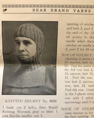 Before his fever, when Ainslee was just 3 years old, his on-the-farm neighbor, 12-year-old Dorothy Vaughan, was chronicling her year in a 1917 journal. Among the many daily activities she writes about, Dorothy proudly documents her dedicated volunteer work as a Red Cross worker throughout the summer and fall. The United States entered World War I in 1917 and there was a great need for supplies for troops. In response, Lila O. Webb turned Shelburne House (today the Inn at Shelburne Farms) into a Red Cross workroom that spring. Webb family members, friends, farm employees, and neighbors produced bandages and knit garments, including socks, sweaters, helmets (see image at right), hats, and mufflers. On October 1, Dorothy Vaughan writes in her journal, “My helmet directions from Mrs. Webb came today. They weren’t like those Mrs. Vosburgh gave me, but Mrs. Woodgate says Mrs. Vosburgh’s the best.”