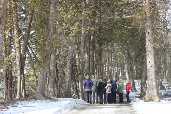 The bluffs overlooking Lake Champlain, both here and in many areas along the lake, are examples of a Limestone Bluff Cedar-Pine Forest. In late January, I tagged along with terrestrial ecologist Tom Wessels and more than a dozen teachers to explore a bit of this area.