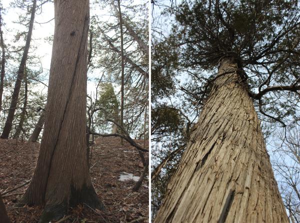 Curiously, according to Tom, about 90% of trees will twist counter-clockwise, 10% will twist clockwise -- at least in the northern hemisphere. Genetics determine the direction of the twist.