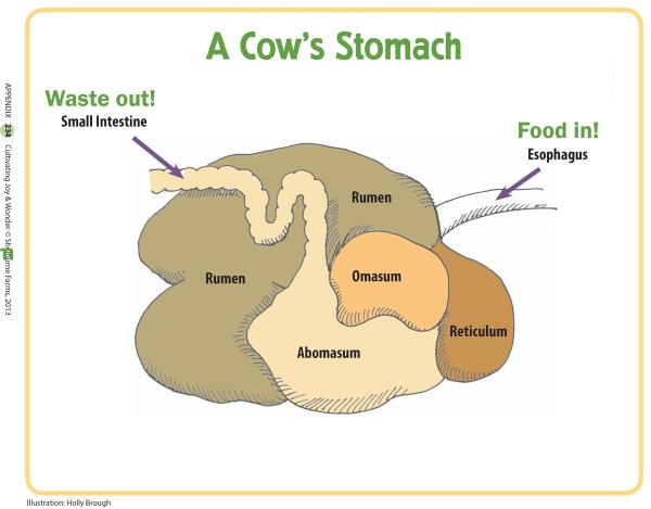 Sheep and goats can survive on grass and leaves because they’re both ruminants. Their stomachs have four compartments that allow them to digest greens. A sheep/goat swallows her food without chewing and it goes into the first stomach, called the rumen. Then, it moves gradually into the reticulum where it is broken down to form cud. You may have heard of cows “chewing their cud.” Sheep and goats do it, too. They throw up this partly digested bit of food into their mouths to chew it a second time. It sounds kind of gross but it’s pretty remarkable, too.