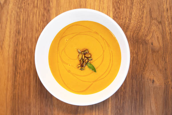 This season, the Market Garden grew eight winter squash varieties: Butternut, honeynut, delicata, honeyboat delicata, spaghetti, sunshine kabocha, koginut, and sugar dumplings. This recipe from our Inn Kitchen calls for butternut or kabocha, but feel free to experiment with what you have on hand from your local farmers. Make this warming soup with the recipe below, or find it as a rotating menu item in our Farm Store for curbside pickup as available.