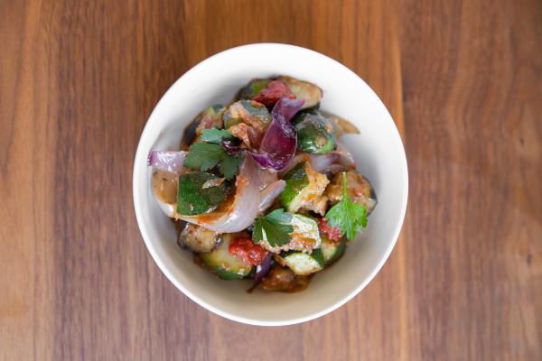 Chef John Patterson shares a menu item from the evening, Summer Vegetable Ratatouille, which takes everything bursting from your garden to make a delicious one-pot meal. And don’t be afraid to double the recipe. “This dish is better the day after it is cooked,” says John, “Once the flavors have a chance to really come together, and it re-heats very easily.”