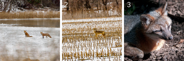 1. Red fox (Craig Newman) | 2. Coyote (Craig Newman) | 3. Gray fox (Cincinnati Zoo)
