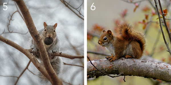 5. Gray squirrel (Robert Thiemann) | 6. Red Squirrel (Craig Newman)