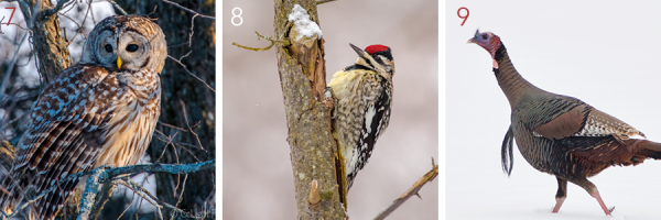 7. Barred owl | 8. Woodpecker | 9. Turkey (all Craig Newman)