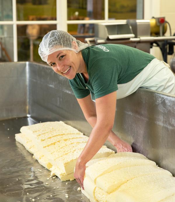 This is the hardest question! As a cheesemaker, it’s like picking your favorite child, but I will admit I eat more 6 month than any of our other varieties. My favorite right now is our Fiddlehead Beer-infused Cheddar. This is such an exciting new partnership with our friends down the road at Fiddlehead Brewery. As a beer lover, it is so exciting to have my two passions combined. Plus, it’s a fun cheese to make!